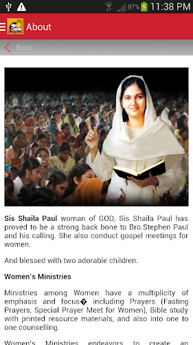 Download P J Stephen Paul Ministries apk 111 for Android पी। जे। स्टीफन पॉल मंत्रालयों के इस मुफ्त आधिकारिक ऐप को डाउनलोड करें।United Evangelical Christian Fellowship(UECF) is a Popular Indian Christian Website and a gateway to Bible resources like telugu, hindi, tamil & malayalam audio christan songs and daily devotionsDownload P J Stephen Paul Ministries for Android to download This Free official App of P J Stephen Paul MinistriesThis app helps you to Grow More in the Lord