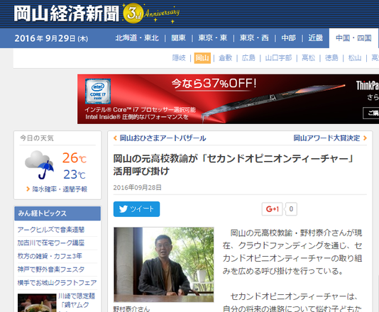 岡山経済新聞にセカンドオピニオンティーチャーについての記事が掲載されました Campfire キャンプファイヤー